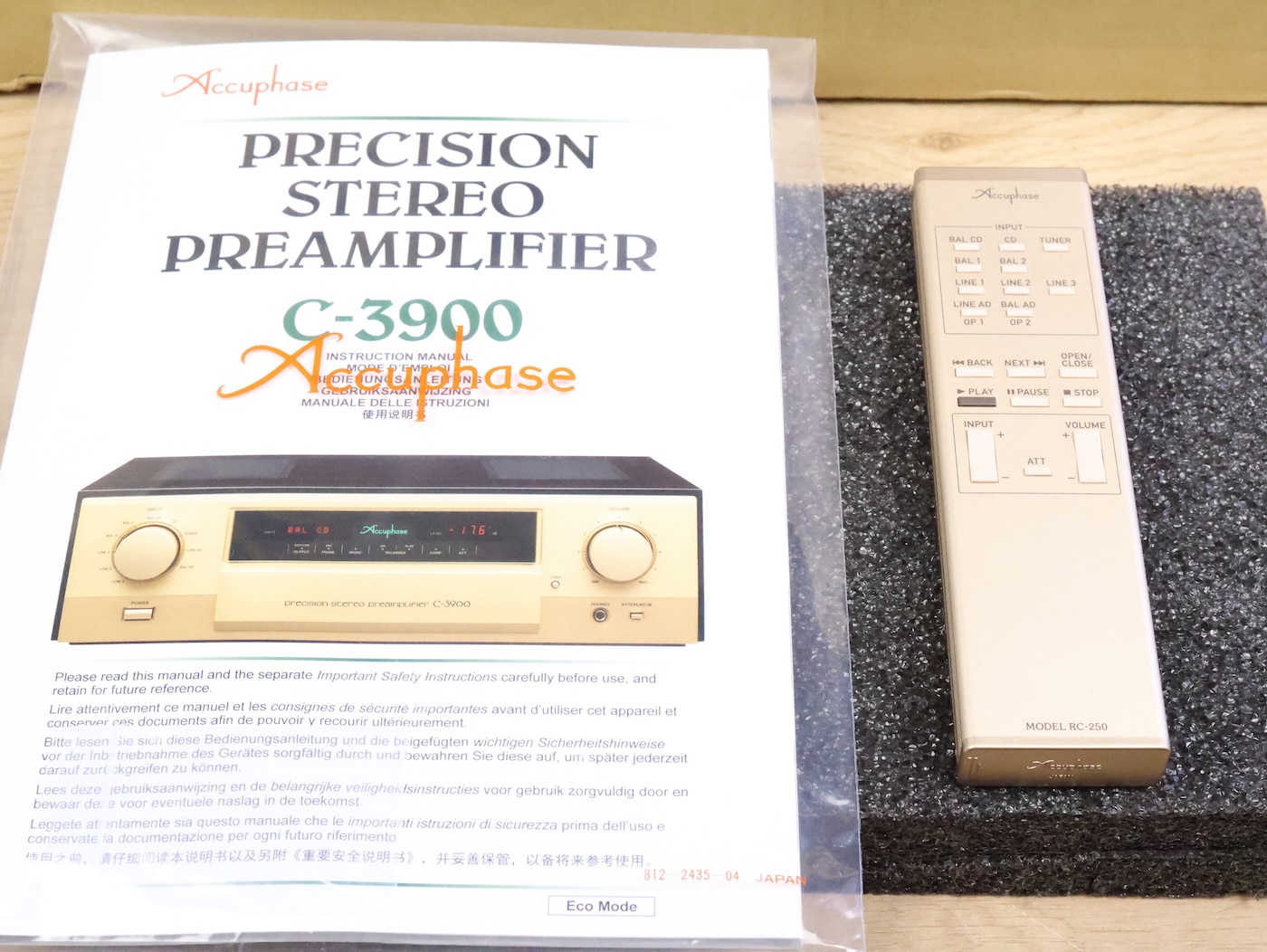 The best by Accuphase ever! One Accuphase C-3900 high end audio preamplifier in an absolute mint, like new condition. Used for a few small demo’s only, it was never in private use (so basically you will get a new one). Retail price is 32.100 euro. The original box, remote control and manual are included. Check our other listings for more interesting items. Free shipping worldwide!