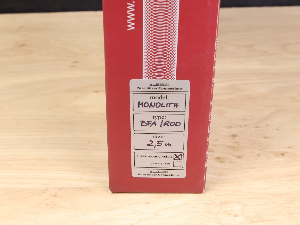 One pair of Albedo Monolith pure silver high end audio speaker cables in a fantastic condition.