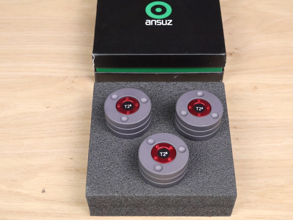 New with 30% high discount! One set of three Ansuz Acoustics Darkz T2 Supreme (T2S) high end audio Resonance Control tuning feet. We unboxed them for taking pictures only. Retail price for the set is 3.600 euro, now for 2.519 euro only. The original box is included. Check our other listings for more interesting items. Free shipping worldwide!