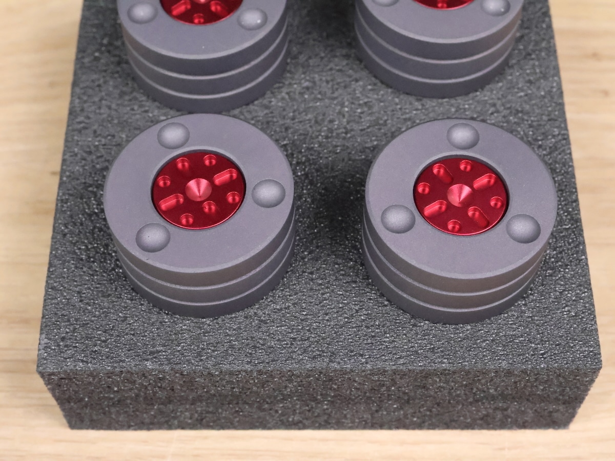 New with 30% high discount! One set of four Ansuz Acoustics Darkz T2 Supreme (T2S) high end audio Resonance Control tuning feet. We unboxed them for taking pictures only. Retail price for the set is 4.800 euro, now for 3.349 euro only. The original box is included. Check our other listings for more interesting items. Free shipping worldwide!