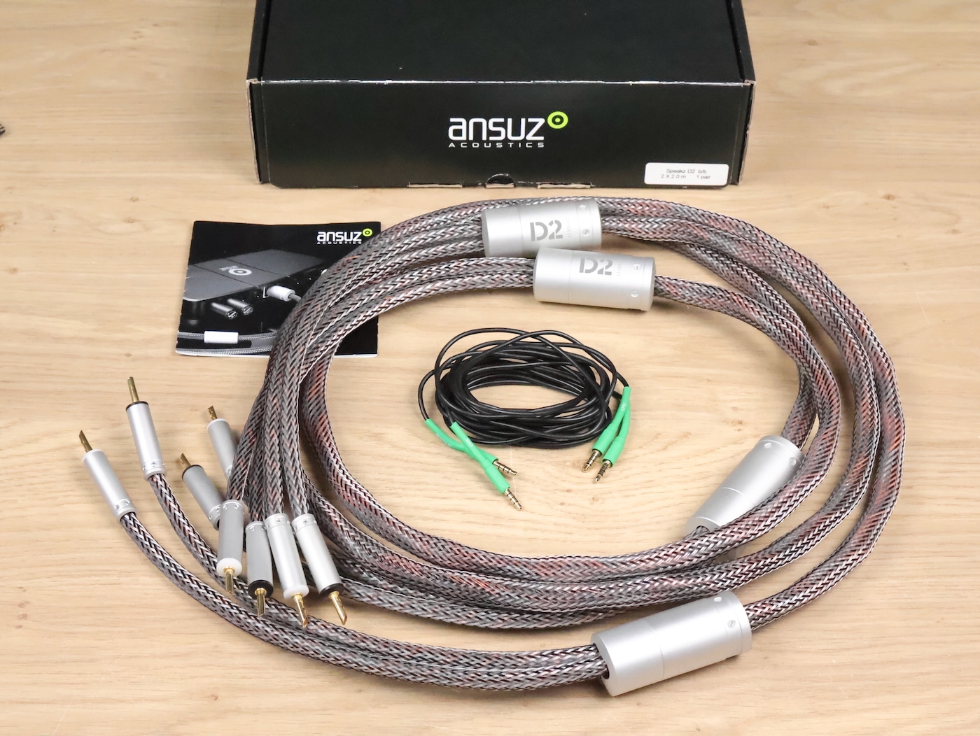 One pair of Ansuz Acoustics Speakz D2 Diamond high end audio speaker cables in a very good condition. The length is 2,0 metre and they have the original hollow banana connectors. Retail price is 13.600 euro. The original box and d-tc grounding wires are included. Check our other listings for more interesting items. Free shipping worldwide!
