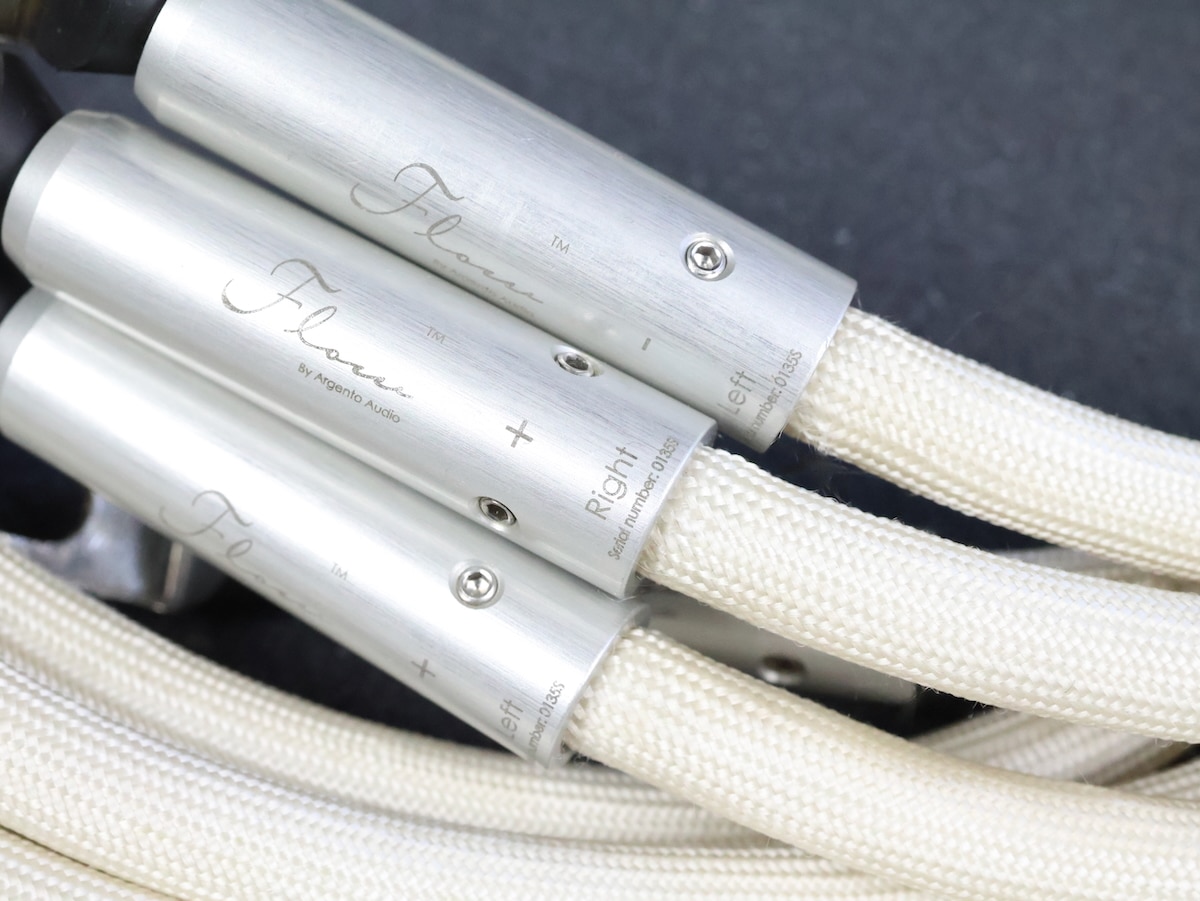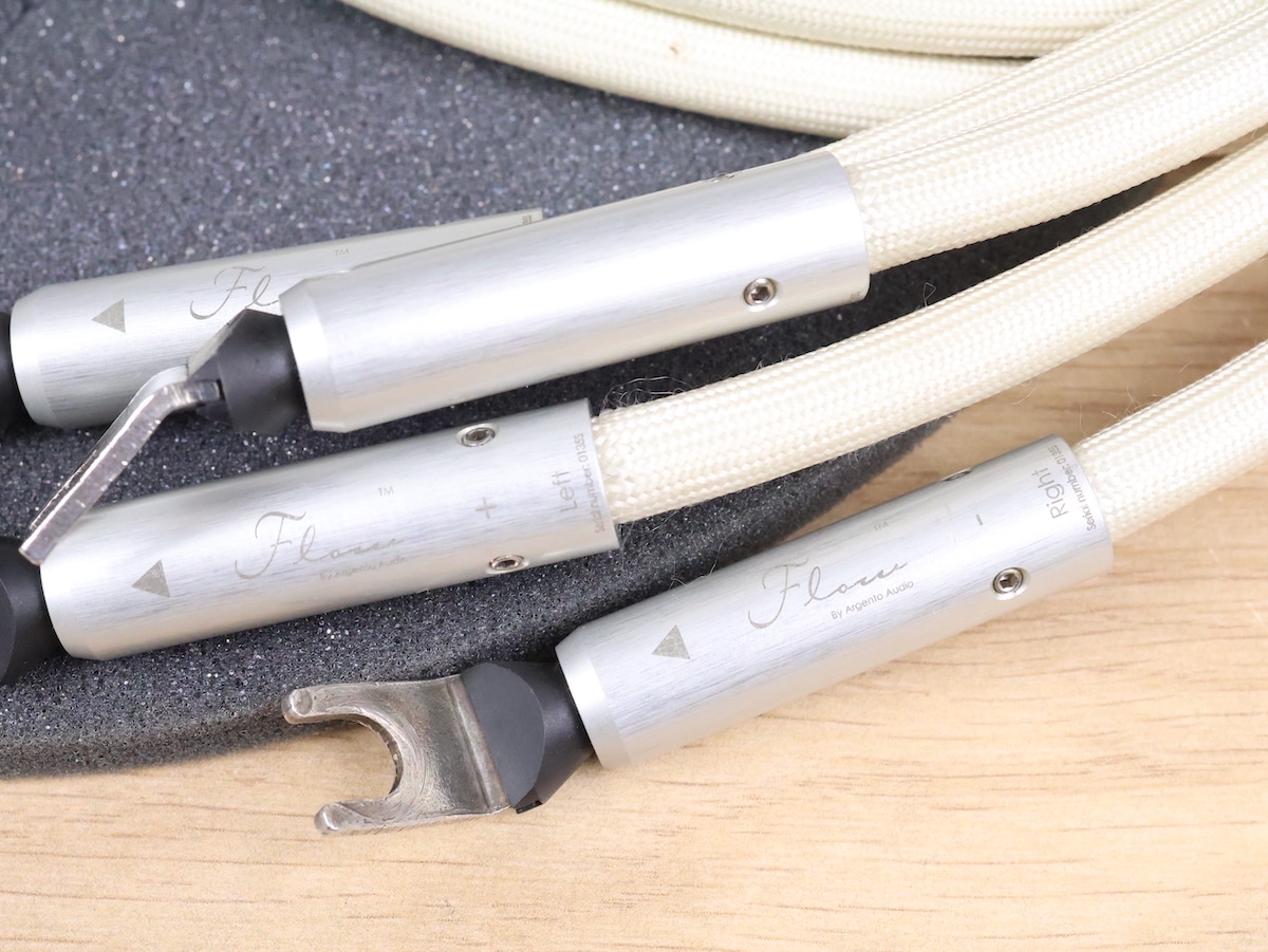 One pair of Argento Audio Flow silver high end audio speaker cables in a very good condition. The length is 2,5 metre and they have the original spade connectors. Retail price is 9.000 euro. Serial number is 0135S. The original metal box is included. Check our other listings for more interesting items. Free shipping worldwide!