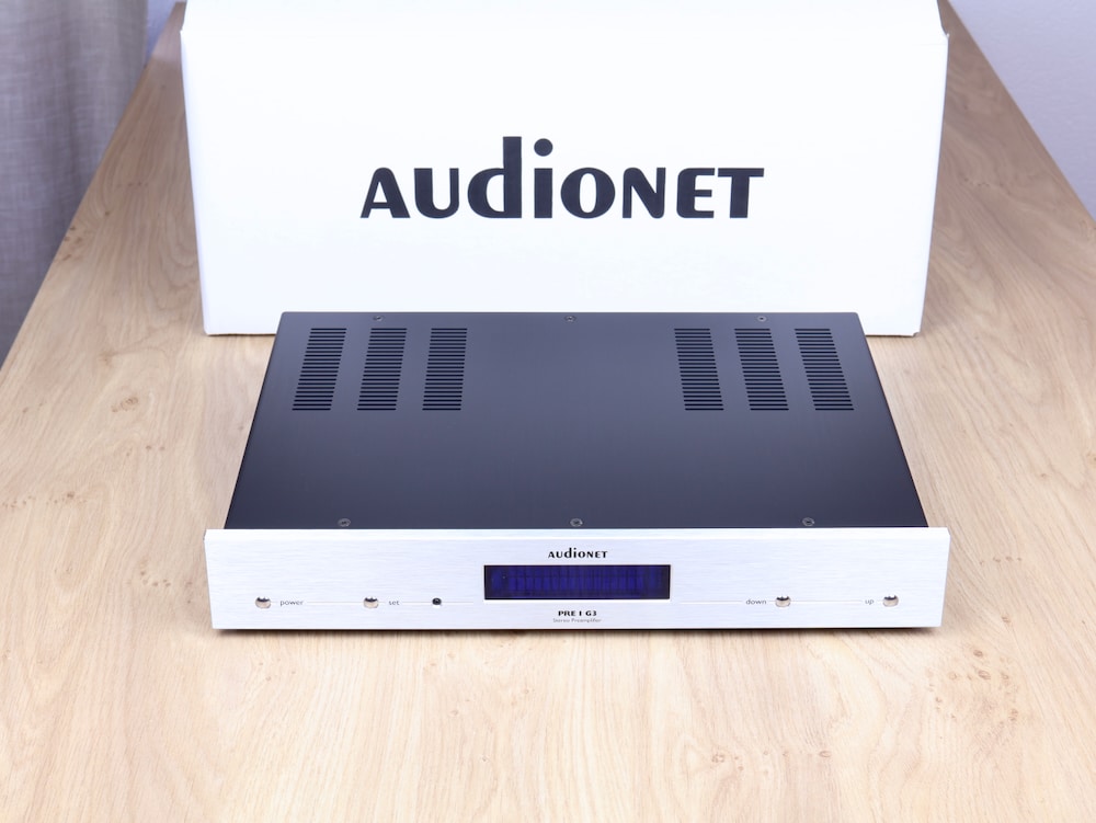 One AudioNET PRE I G3 high end audio Preamplifier in a fantastic condition (original 230 volts version, blue LED color). PRE I G3 combines opulent equipment with a brilliant sound. It is difficult to describe the sound it produces: spacious yet subtle, transparent and sleek, powerful and unshakeable. PRE I G3 plays music in all its facets naturally and effortlessly. Serial number is 02.23.19. Retail price is 5.499 euro. The original box, Logitech remote control, manuals and earth grounding cable are included. Check our other listings for more interesting items. Free shipping worldwide!