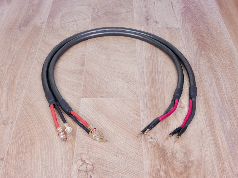 An all time classic, very hard to find! Still one of the most desired AudioQuest cables. One pair of AudioQuest AudioTruth Dragon Hyperlitz full silver high end audio speaker cables in a good condition. Dragon Hyperlitz uses FPS high purity long grain solid silver. Twenty solid polyethylene insulated 20 awg (0.52 sq. mm) conductors are spiraled together in a Hyperlitz array. The combination of the finest materials, and the best geometry make Dragon the ultimate cable. The length is 1,2 metre and they have spade connectors (original ones at speaker sides and WBT-0680 at amplifier sides). Check our other listings for more interesting items. Free shipping worldwide!