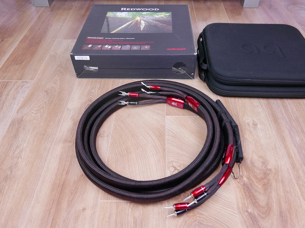One pair of AudioQuest Redwood speaker cables in a very good condition. Redwood stands as a giant among its peers. The carefully finessed combination of Solid Perfect-Surface Copper+ and Perfect-Surface Silver conductors allow your music to present a sound field that is both large (as it was intended) and coherent. The addition of silver offers a significant improvement in ease and resolution. The length is 3,0 metre and they have the original AudioQuest AQ1000 spades and banana connectors (connected with screws, so changeable). Retail price is 12.900 euro. The original box is included. Check our other listings for more interesting items. Free shipping worldwide!