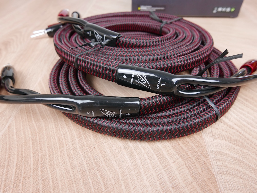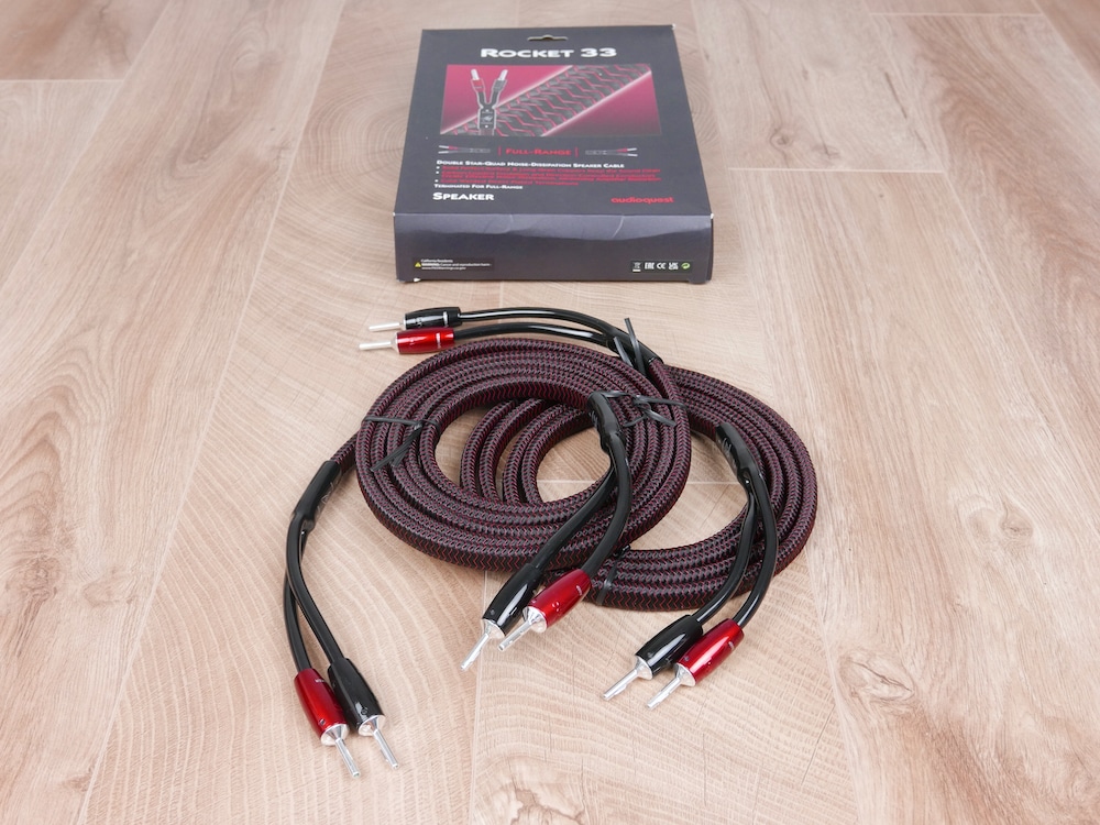 New with discount! One pair of AudioQuest Rocket 33 audio speaker cables with a length of 2,5 metre. They have the original banana connectors and the original box is included. Retail price is 699 euro, now for 469 euro only. Check our other listings for more interesting items. Free shipping worldwide!
