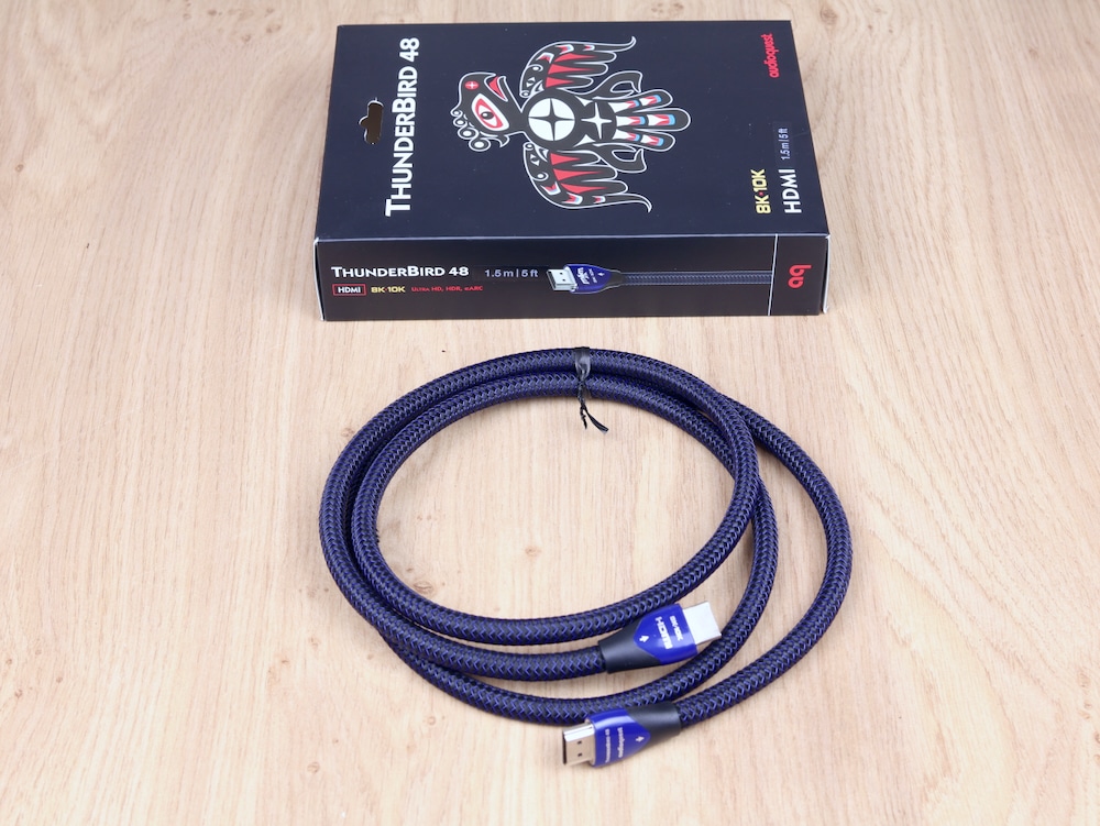 One AudioQuest ThunderBird 48 high end audio high speed 8K-10K HDMI cable in a fantastic condition. The length is 1,5 metre and it has the original AudioQuest HDMI connectors. Retail price is 1.049 euro. The original box is included. Check our other listings for more interesting items. Free shipping worldwide!