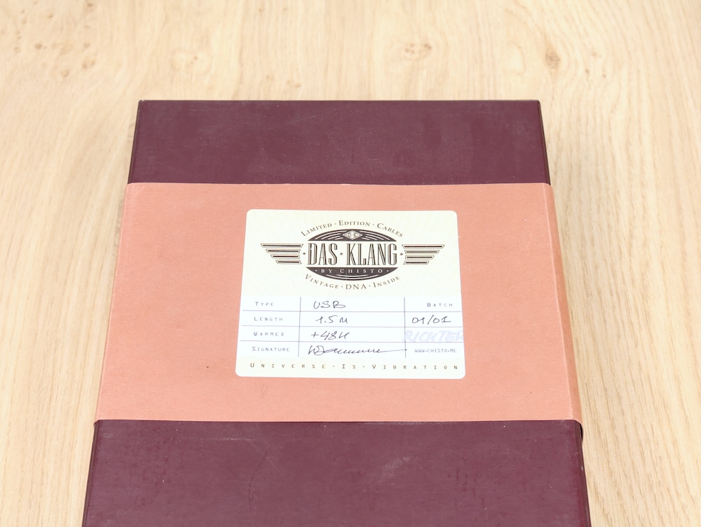 One Chisto Das Klang Richter high end digital audio USB cable in a fantastic condition. It brings an instant fluid and organic sound, rich texture. The length is 1,5 metre and it has the original USB connectors (type A to B). Retail price is 3.250 euro. The original box is included. Check our other listings for more interesting items. Free shipping worldwide!