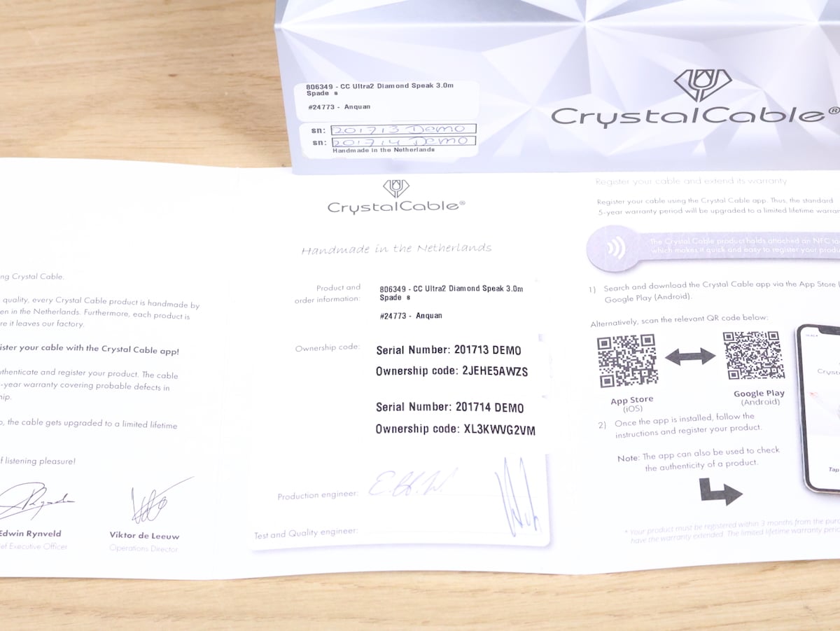 One pair of Crystal Ultra2 Diamond silver-gold high end audio speaker cables in a fantastic condition. Ultra2 Diamond is the top model in the Diamond Series 2. They deliver enhanced musicality, neutrality, and spatial precision — offering effortless dynamics and exceptional tonal balance. They are made of an alloy of silver and gold. This combination produces an exceptionally open, transparent, and detailed sound without being harsh or sharp.