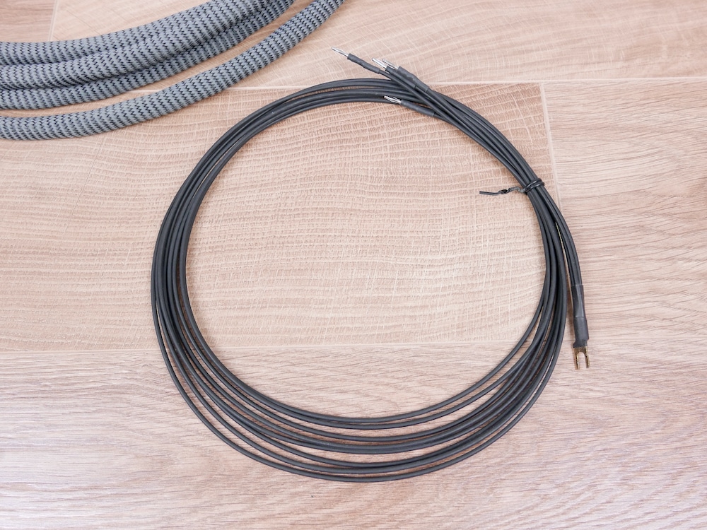 One pair of Dyrholm Audio Vision high end audio speaker cables in a fantastic condition. Vision speaker cables are made of 3 x 7 UPOCC copper wires (21 pcs) in each conductor. More than 10 square millimeters per leader (AWG 7). The wires are acoustically optimized in dimension for this particular cable. The wires are braided with cotton fibers and sealed against corrosion. Each conductor are electrically shielded from noise, and it is possible to ground the screens, which provides even better sound. This construction also provides a minimum of accumulation of static electricity and protects against vibrations. These cables are unique. Overall, a musical experience far beyond the ordinary. A must for all music lovers.