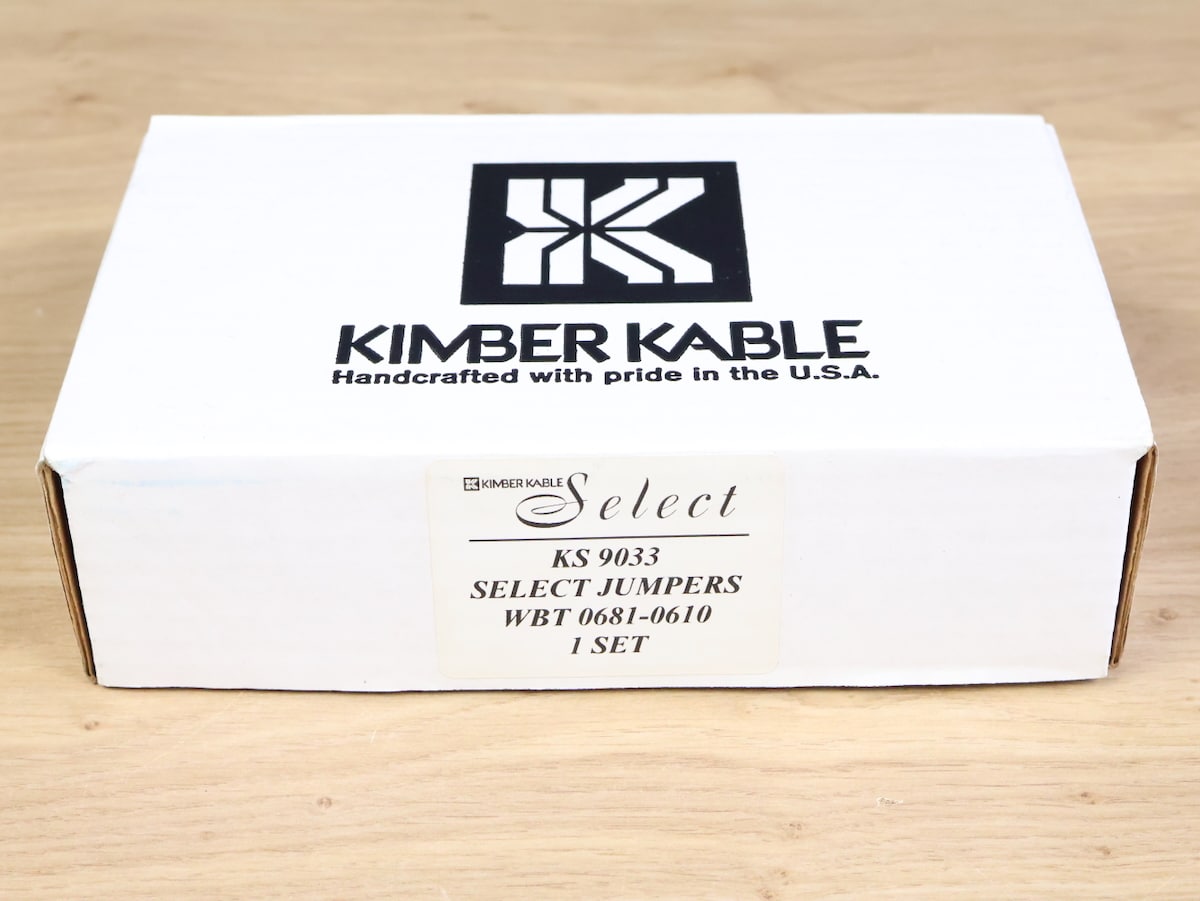 One set of four Kimber Kable Select KS-9033 high end audio speaker cable jumpers in a good condition. Kimber Kable Select speaker jumpers have been uniquely designed to complement the Select series loudspeaker cables. These jumpers are comprised entirely of the finest Hyper-pure VariStrand copper conductors.