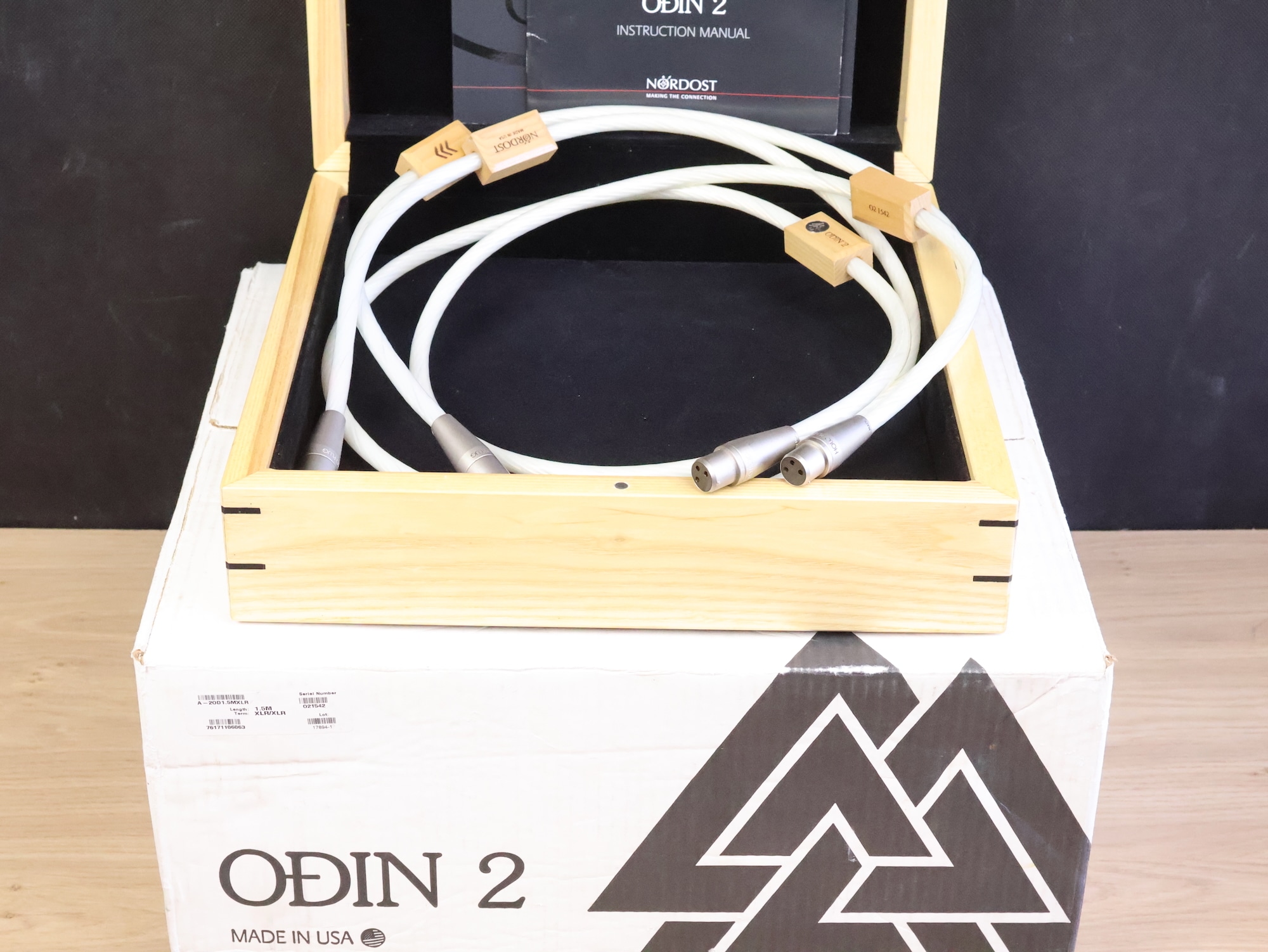 One pair of Nordost Odin 2 Supreme Reference high end audio interconnect cables in a fantastic condition. The length is 1,5 metre and they have the original Nordost HOLO:PLUG XLR connectors. Serial number is O21542. Retail price is 38.790 euro (current German price list). The original wooden box, outer box, certificate and booklets are included. Check our other listings for more interesting items. Free shipping worldwide!