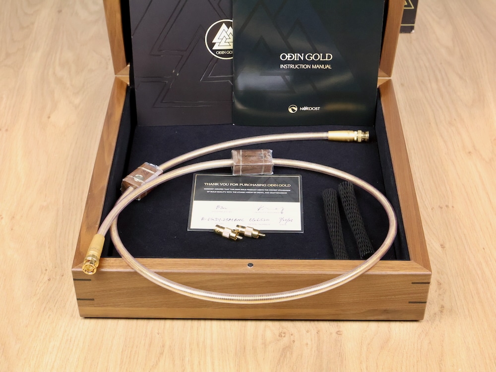 Almost impossible to find on the market! One Nordost Odin Gold high end digital audio interconnect cable in a mint, like new condition (used for one short demo only). The wooden blocks are still factory sealed. Odin Gold delivers exacting impedance, minimal capacitance, impeccable shielding, and rapid transmission—qualities that many cable manufacturers can only dream of achieving.