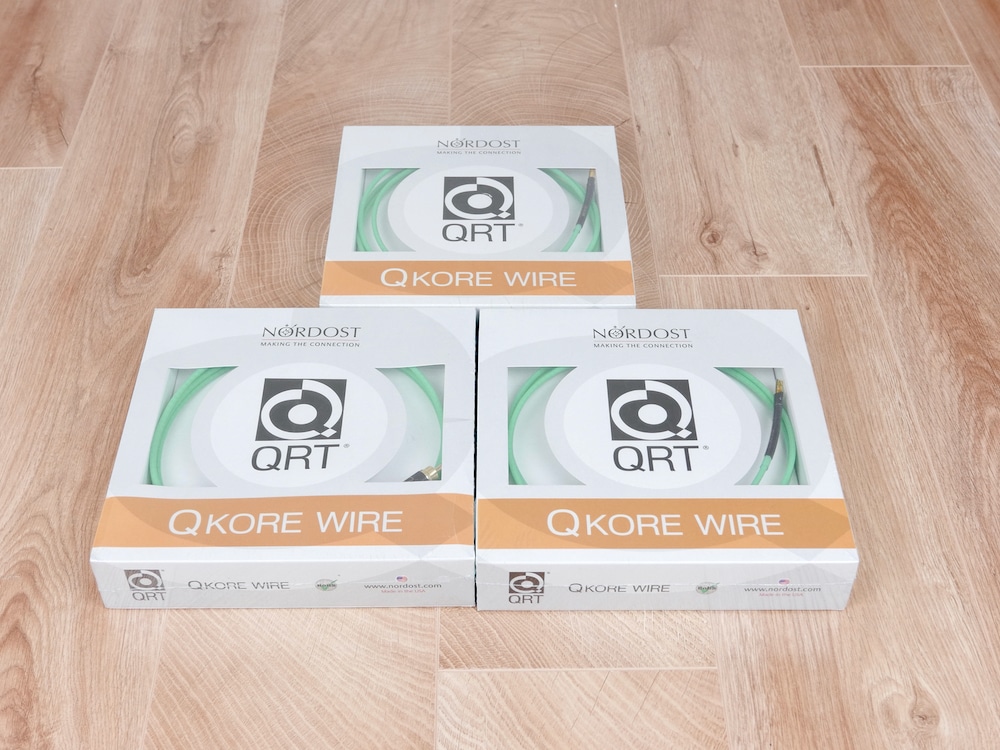 New in box with high discount! Three QRT Quantum QKORE Wire audio ground cables with a length of 2,0 metre. The boxes are still factory sealed. QKORE Wire is designed for use with the QKORE Ground Units. It is constructed to provide the path of least resistance to ground, for the stray, high-frequency, low-voltage potentials that can affect the performance of your sound system. The QKORE Wire is a mechanically tuned cable that utilizes Nordost’s patented Micro Mono-Filament technology, combined with extruded FEP insulation, and constructed with a 16 AWG, silver-plated OFC, solid core conductor. They have the original RCA and hollow banana connectors. Retail price is 479 euro, now for 289 euro for one QKORE Wire only. Check our other listings for more interesting items. Free shipping worldwide!