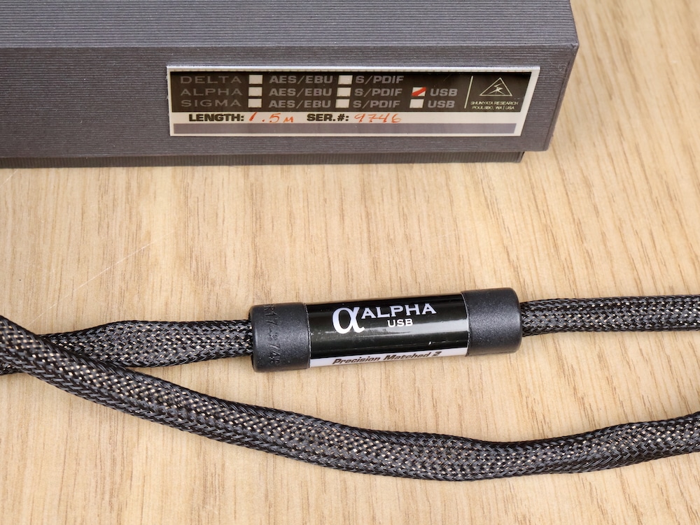 One Shunyata Research Alpha high end digital audio USB cable in a fantastic condition. Shunyata Research digital cables are produced using a Precision Matched Z (PMZ) concept. This means that tolerances of the conductor surface, dielectric extrusion, and the precision of the braided shield are held to minute variances. To achieve these tight tolerances, the extrusion and braiding machines must be run at one-quarter speed during the manufacturing process. The result is better performance through a reduction of cable-induced ‘signal jitter’.