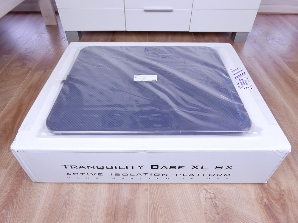 Brand new in box, still factory sealed! One Synergistic Research Tranquility Base Carbon XL, the new, current version. Introducing Tranquility Base Carbon, the first all-new Tranquility Base in over a decade. With production they started with a new chassis machined from a solid billet of aircraft aluminum for a 50% slimmer and 80% more rigid chassis. They experimented with new laminates and arrived at carbon fiber for its superior response to mechanical and airborne vibrations. Their most advanced EM Cell technology was transferred directly from Galileo SX PowerCell. Finally, its internal UEF Technology was transferred from the new state-of-the-art SRX cable loom. The net result is a thinner and more rigid Tranquility Base with a lower noise floor from which springs improved dynamics and sound staging combined with smoother, more extended high frequencies. Dimensions are W 51cm x D 59cm. Retail price is 3.995 euro. The original box, manual and all accessories are there, also two sets of three MiG 2.0 Isolation Footers. Check our other listings for more interesting items. Free shipping worldwide!