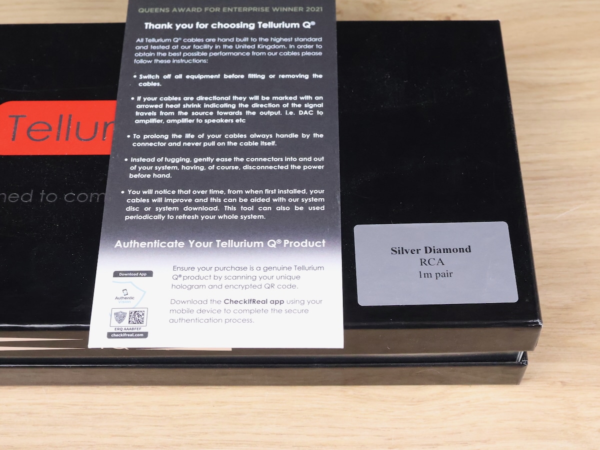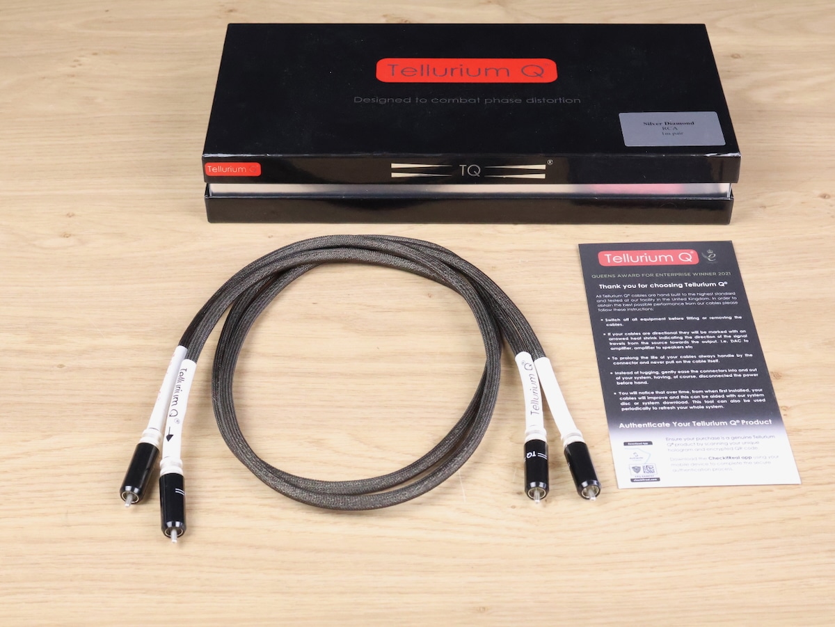 One pair of Tellurium Q Silver Diamond high end audio interconnect cables in a very good condition. Silver Diamond is extraordinarily transparent, satisfyingly open, full-bodied, with an awesome bass, and extremely sweet and smooth across the midrange.