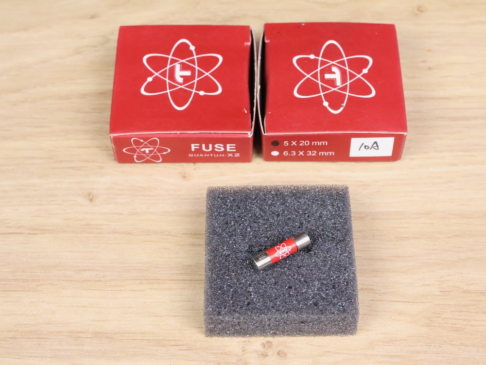 New with discount! Two Telos Audio Design Quantum X2 Fuses, the 5x20mm slow blow version, 10A 250V. Quantum X2 will enable you to experience a huge improvement in sonic performance compared to conventional fuses. With Quantum X2, you are able to hear extreme music resolution and livelier music atmosphere with a darker music background. Be it the source, preamp or power amplifier, the performance will be enhanced to a level you can ever imagine.