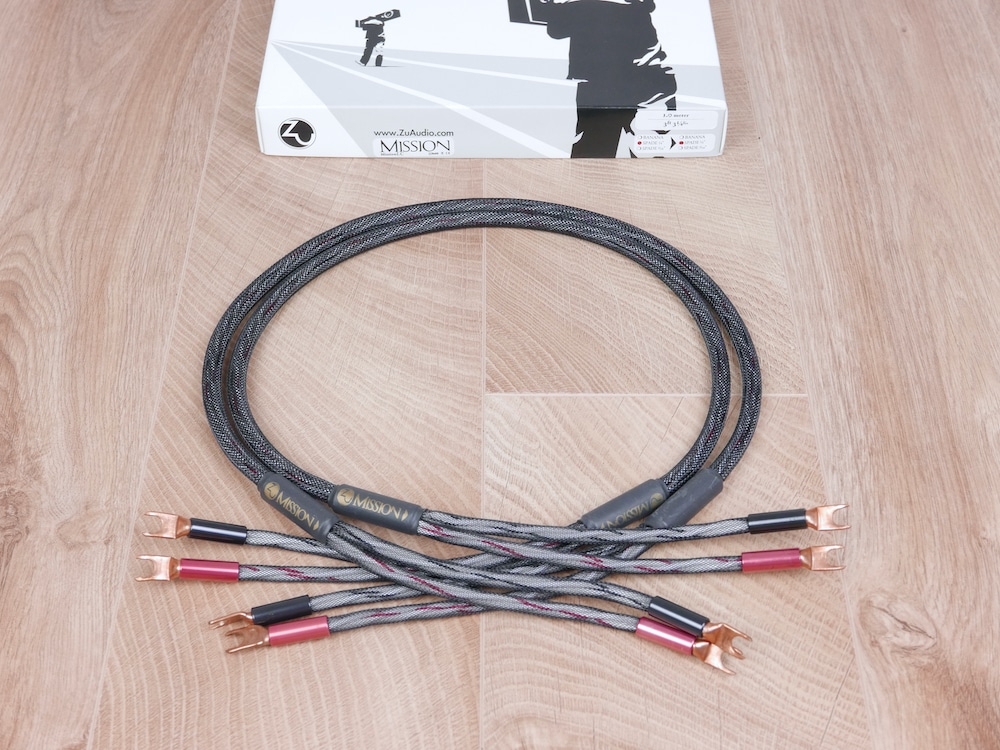 One pair of Zu Mission audio speaker cables with a length of 1,0 metre. Mission speaker cables give excellent resolution and has a tone center right smack in the middle of the music weighted power spectrum. While it performs well on the extremes, it never loses its rock-solid performance in the meat of the music. It’s agile and dynamic yet will not highlight or emphasize problems in recordings, your room, or playback rig. They have the original spade connectors and the original box is included. Retail price is 299 euro. Check our other listings for more interesting items. Free shipping worldwide!